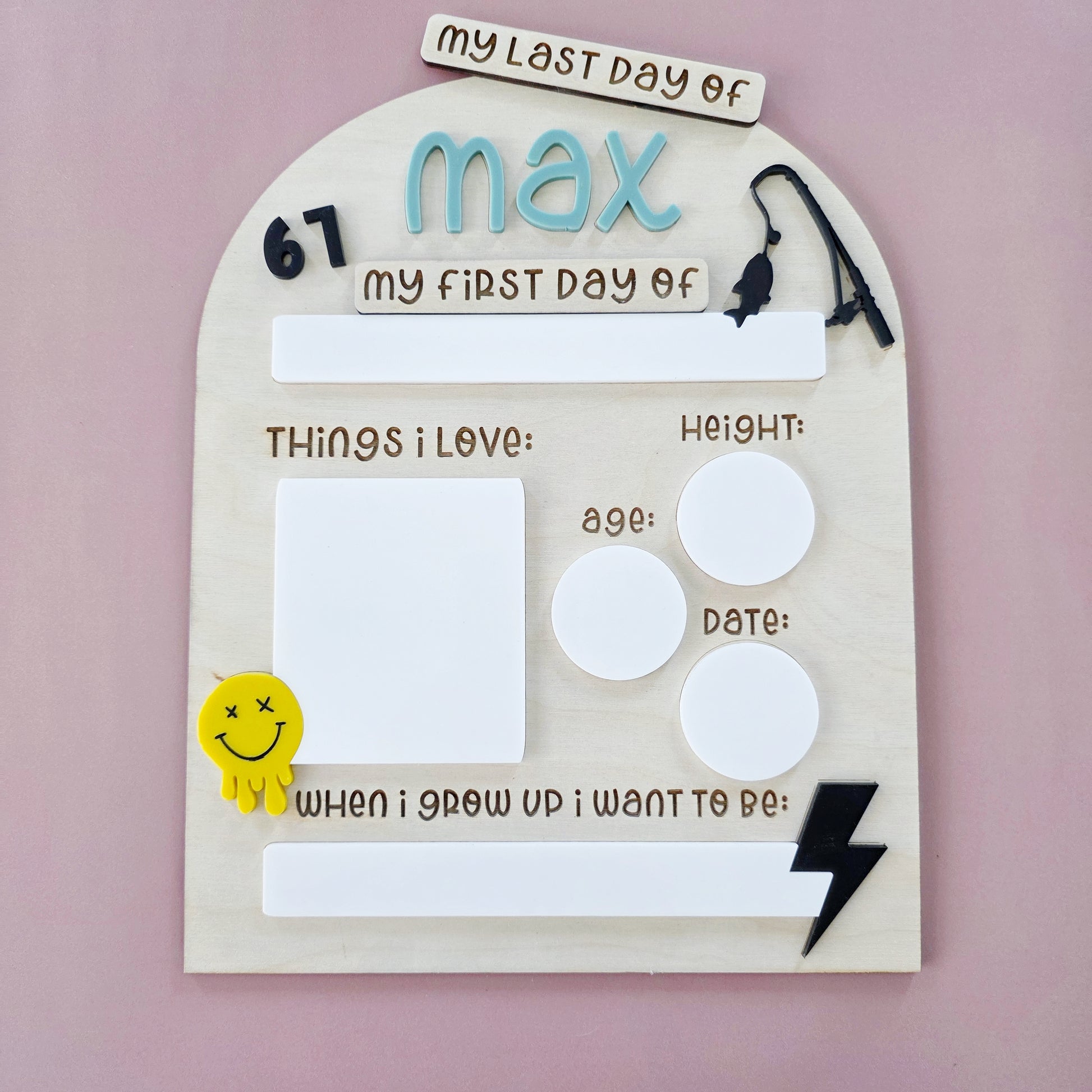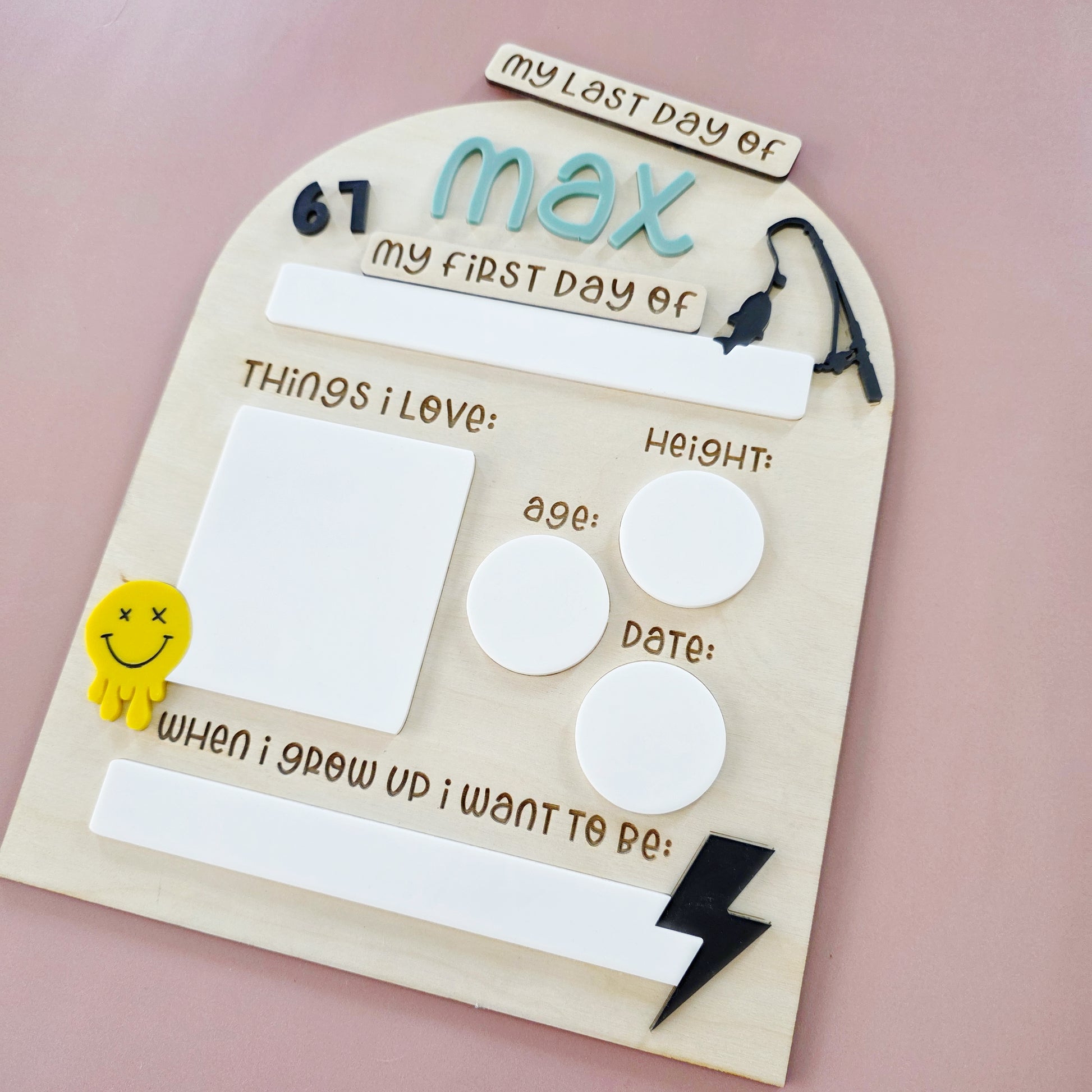 Our super fun Interchangeable First/Last Day of School board is a must have to capture those little school details that you always forget about, like how tall they were, what they want to be when they grow up etc. Simply use a whiteboard marker or paint pen to fill in the blanks.